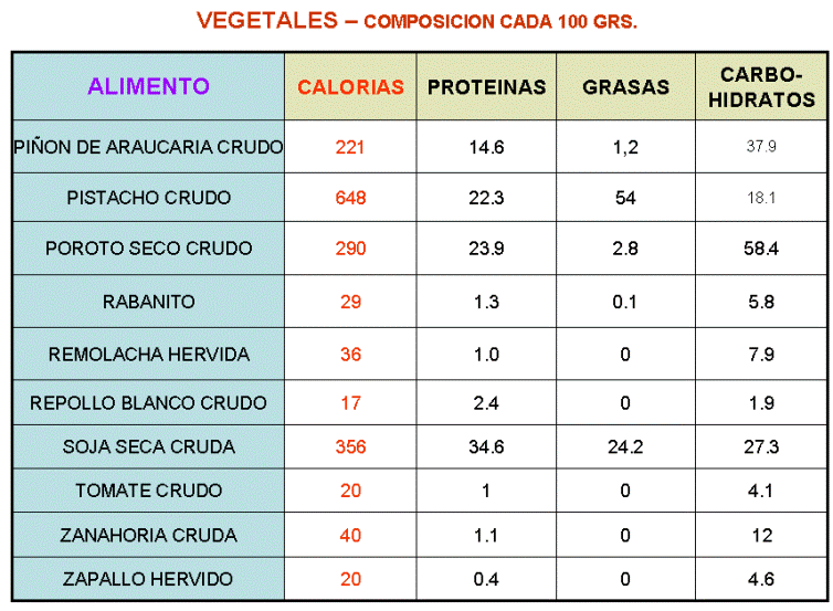 Tabla comparativa de proteínas en diferentes alimentos III (vegetales) Recetas Fitness Fáciles ...