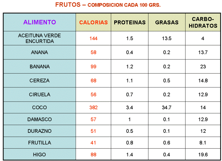 Tabla de composición de alimentos - Mis Trucos para Adelgazar