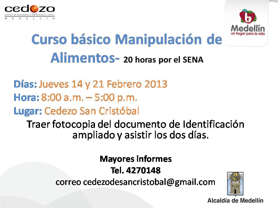CEDEZO Moravia: INSCRIPCION CURSO DE MANIPULACION DE ALIMENTOS PARA EMPRESAS DE ALIMENTOS