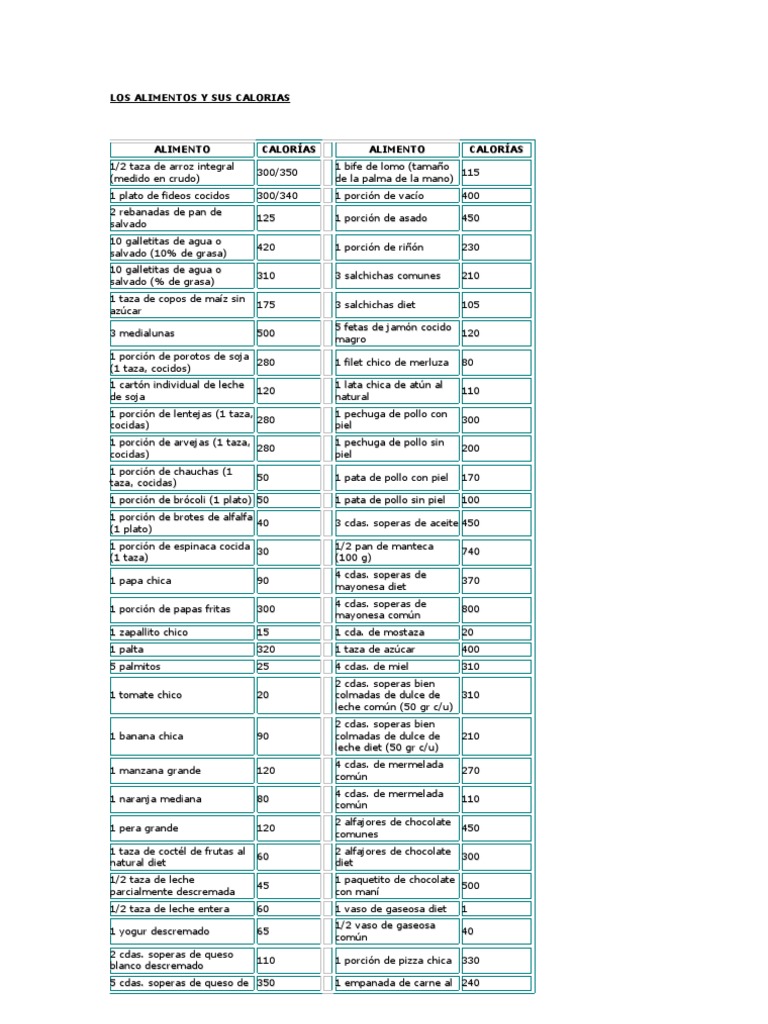 Tabla de Calorias de Alimentos - Info en Taringa!