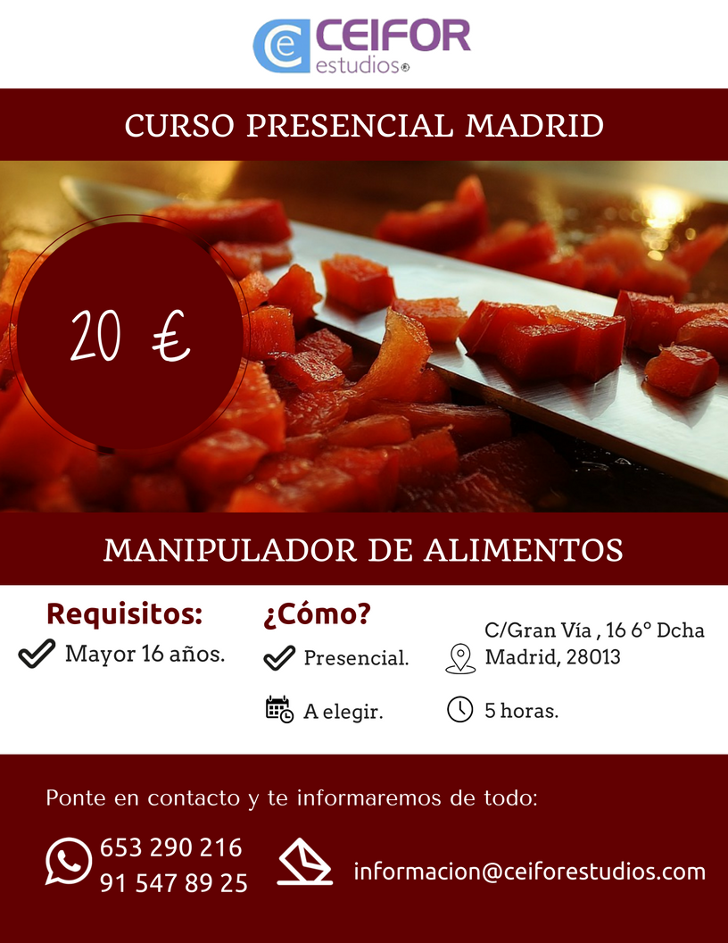 Ceifor Estudios: MANIPULADOR DE ALIMENTOS MADRID