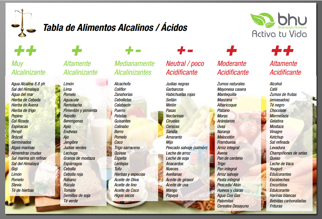 Tabla de los alimentos Alcalinos y Ácidos | Alimentos ácidos, Alimentos, Ácidos