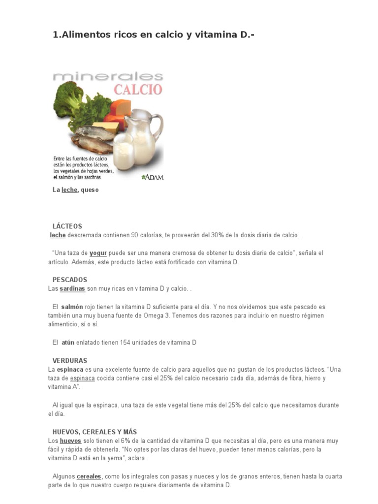 Sugerencias de alimentos ricos en calcio y vitamina D.pdf | ensalada | Vitamina D