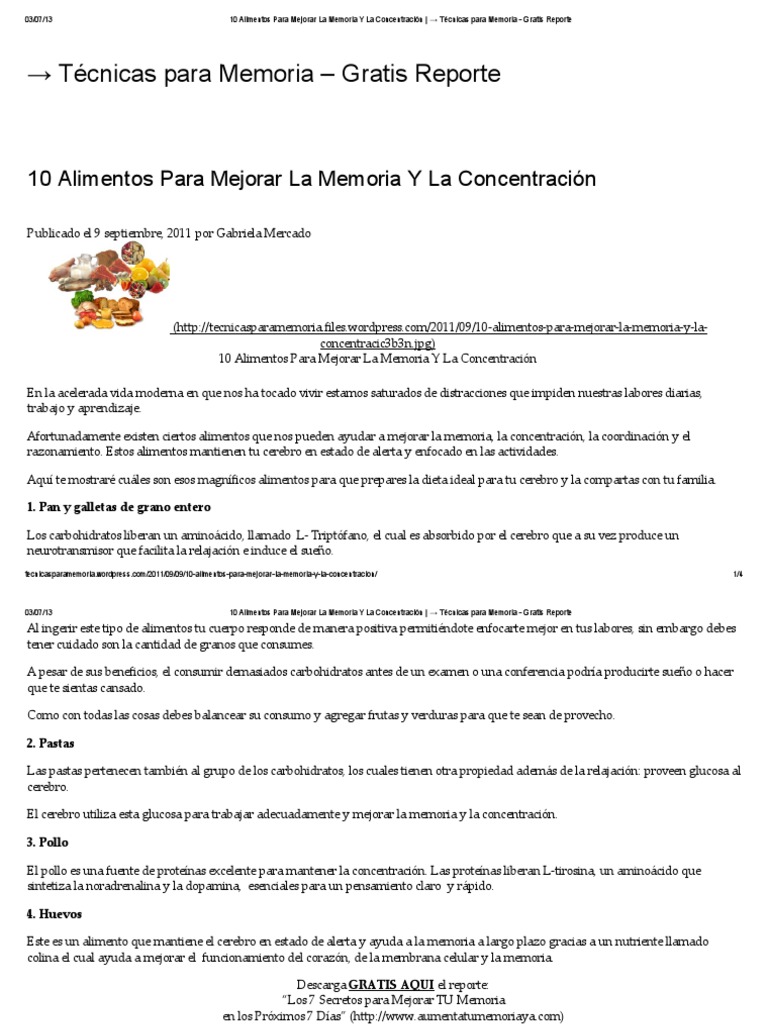6 alimentos esenciales para la mejorar la memoria y la concentración para estudiantes y 3ª edad ...