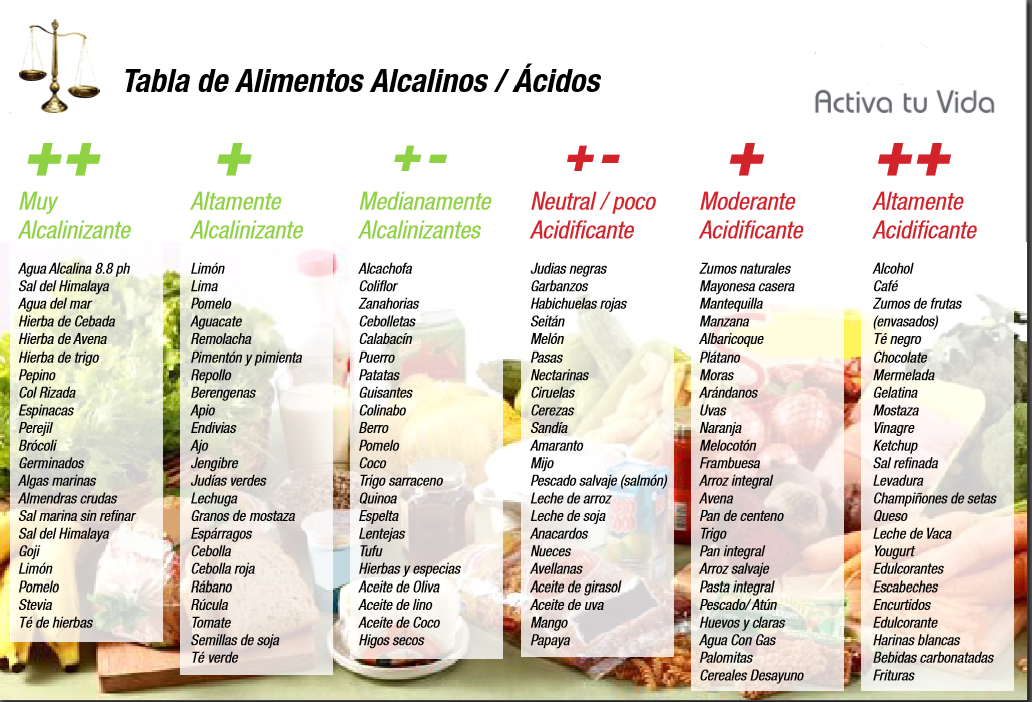 Tabla de Alimentos Alcalinos y Ácidos | Ph Alimentos