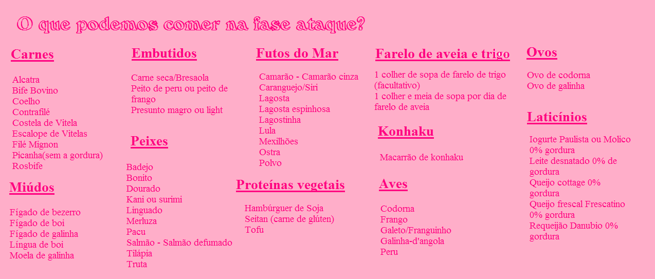 Os Alimentos Autorizados Durante essa fase voc ter direito a onze categorias de alimentos para se alimentar, apresentados a seguir. Nela é permitido apenas o consumo de alimentos proteicos magros de origem animal. Dieta Dukan fase de ataque: alimentos permitidos.