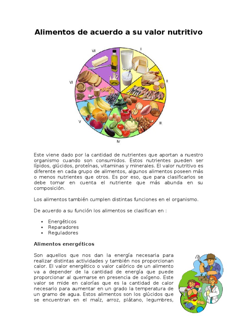 Alimentos de Acuerdo a Su Valor Nutritivo