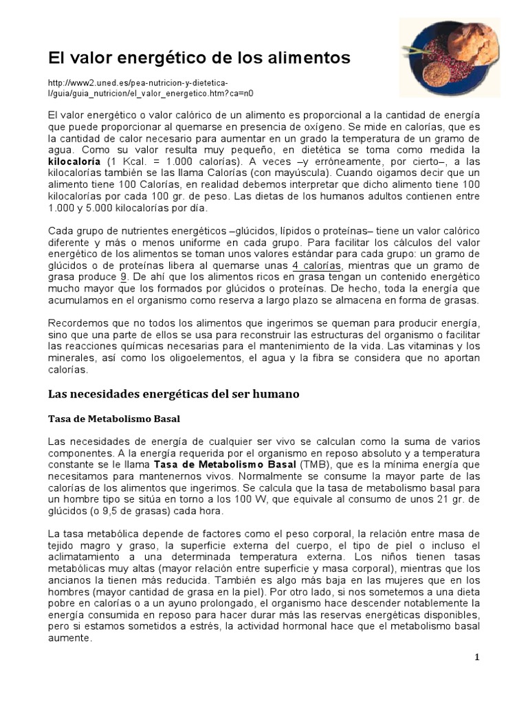 VALOR ENERGETICO DE LOS ALIMENTOS | Juan José Calixto - Academia.edu