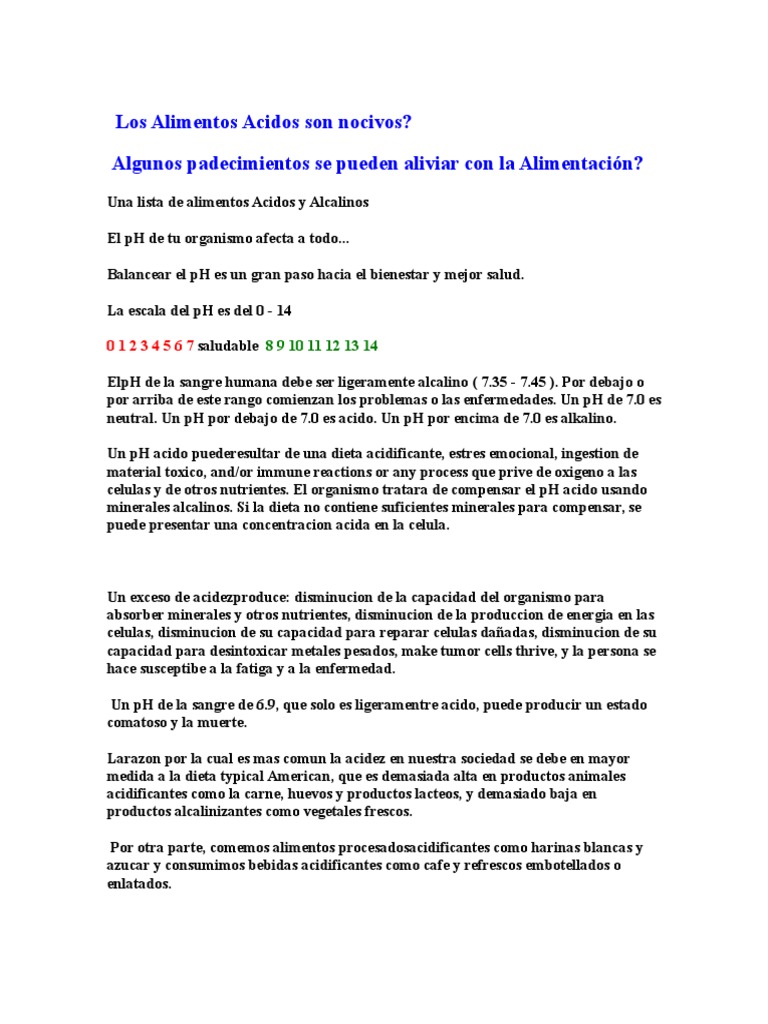 listado de alimentacion acidos y alcalinos.pdf | Decapado | Alimentos