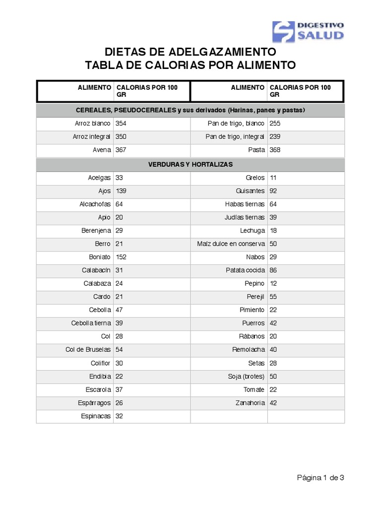 Tabla De Calorias De Todos Los Alimentos - Completa-Macronutrientes Dieta.pdf | Alimentos ...