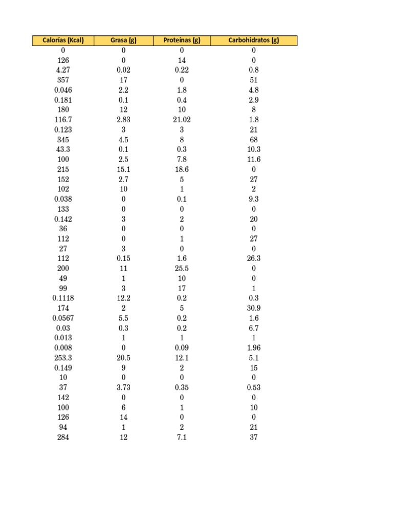 Lista De Calorias De Los Alimentos Pdf - Mayoría Lista