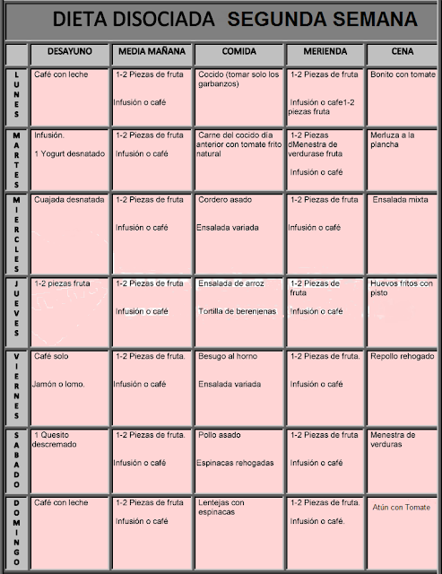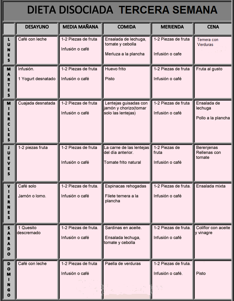 DIETA DISOCIADA Y TABLA DE ALIMENTOS COMPATIBLES: MENUS DIETA DISOCIADA COMPLETOS | Menu semanal ...