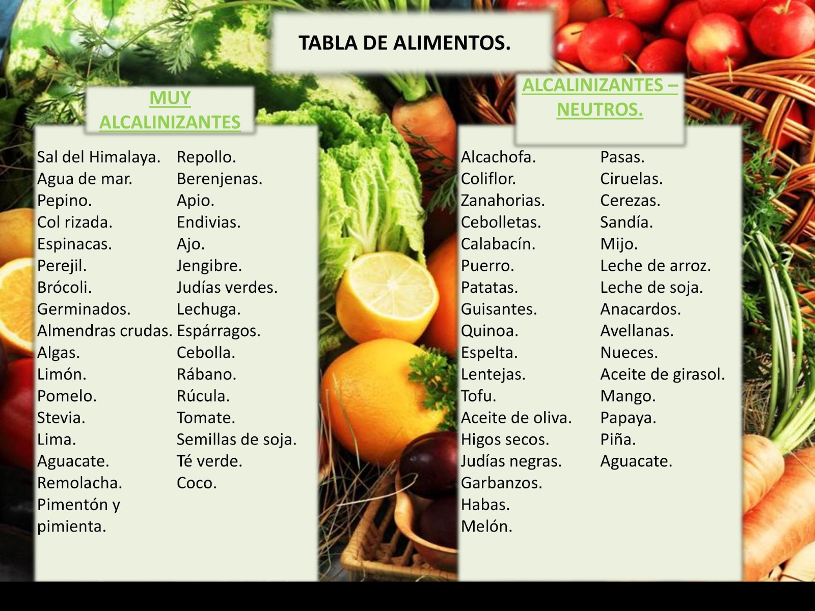 Alimentación y alimentos ácidos o acidificantes y alcalinos o alcalinizantes | Alcalina ...
